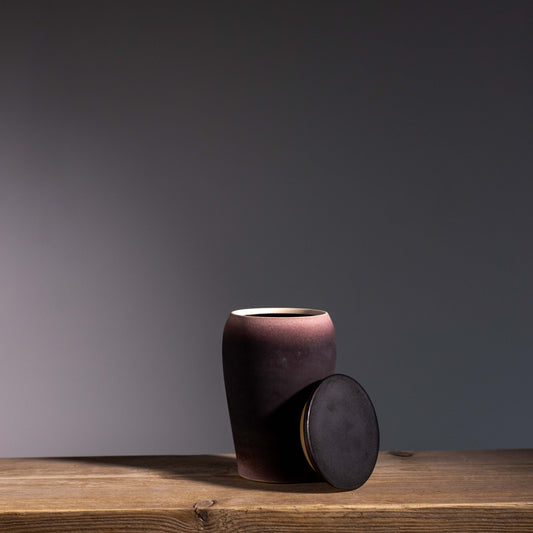 L&S 05 | Medium Lidded Jar | H: 14cm- D: 10cm | Plum / Brown