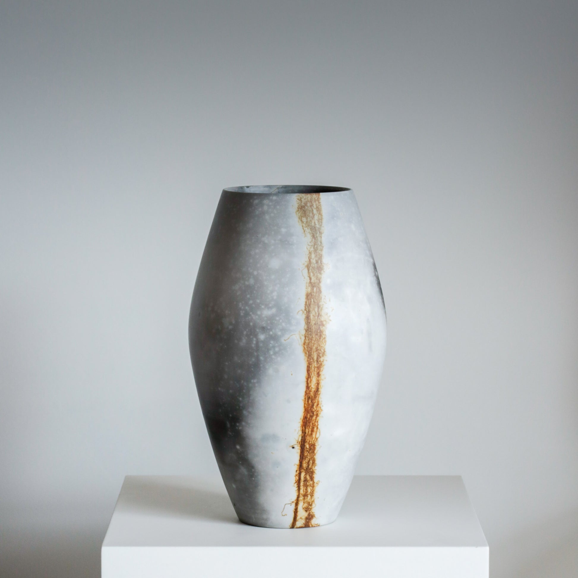 Smoke-fired, using raw materials foraged from the wild hills around my home. I also use a wide array of other materials, including wire wool, oxides and salts.