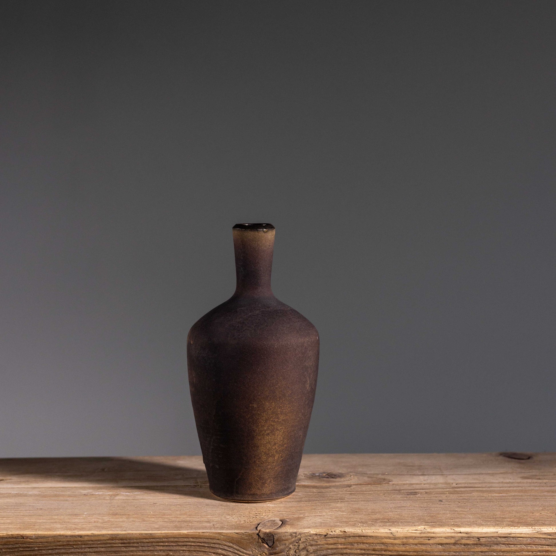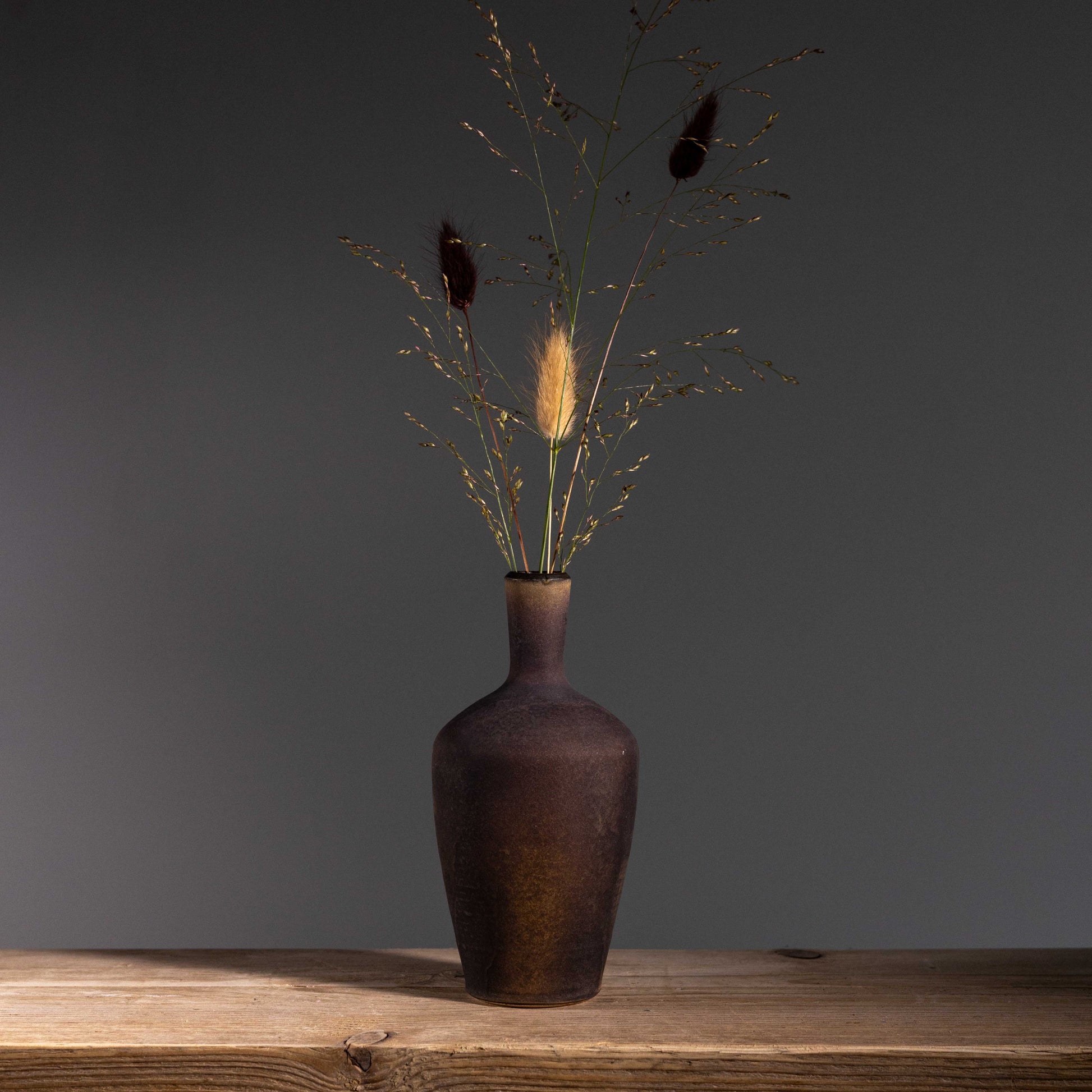 Stoneware vessel with a matte exterior and metallic black interior, designed for a small selection of flowers or to sit beautifully on its own.