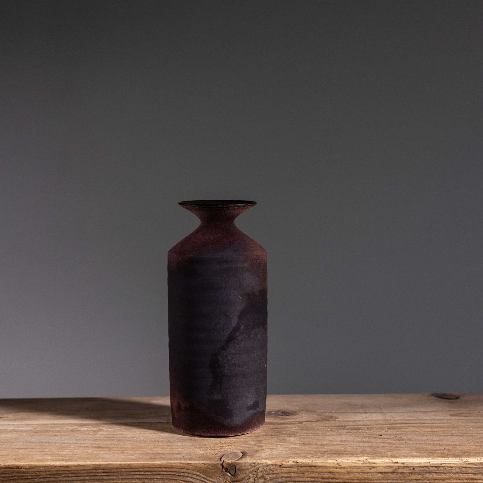 Stoneware vessel with a matte exterior and metallic black interior, designed for a small selection of flowers or to sit beautifully on its own.
