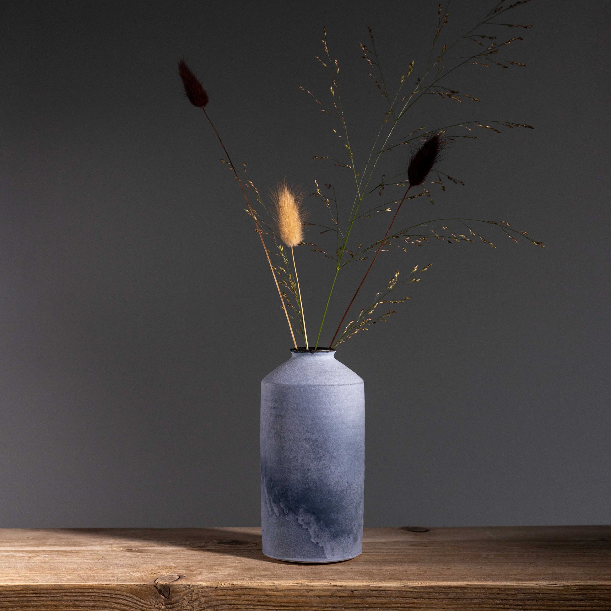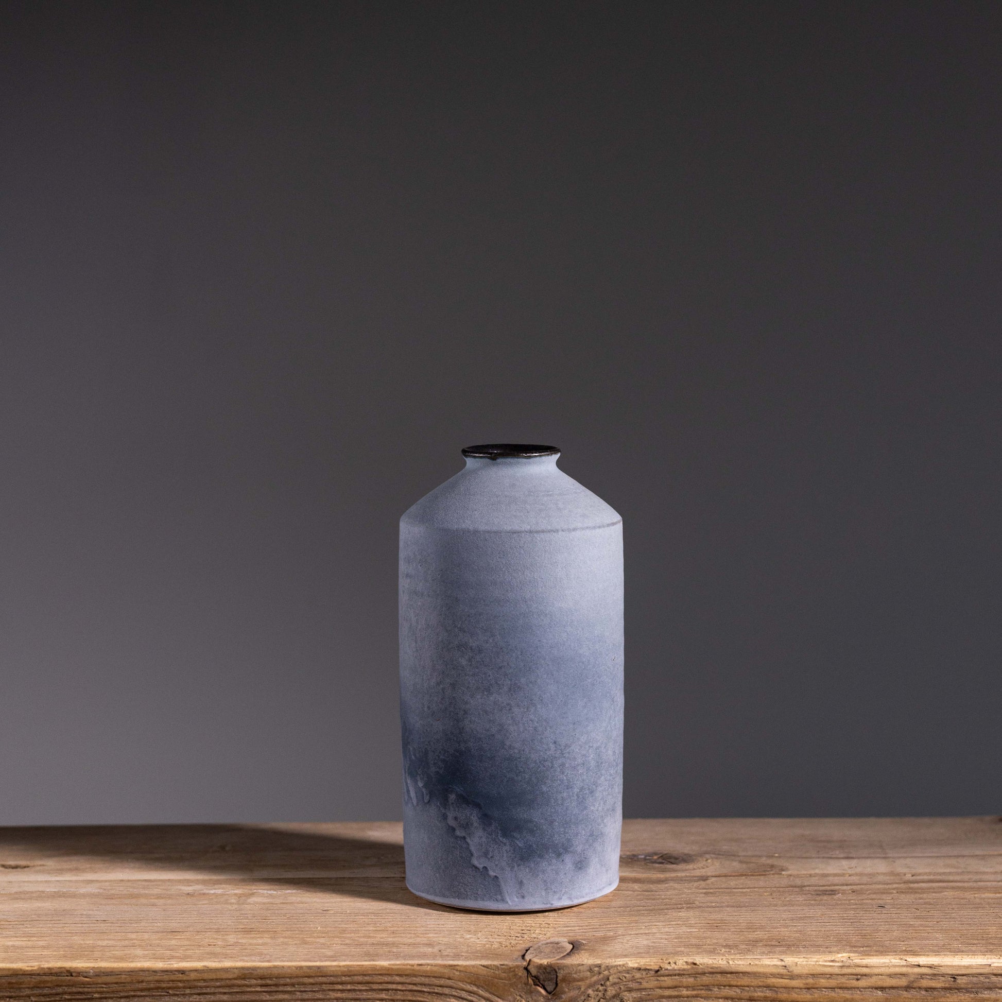 Stoneware vessel with a matte exterior and metallic black interior, designed for a small selection of flowers or to sit beautifully on its own.
