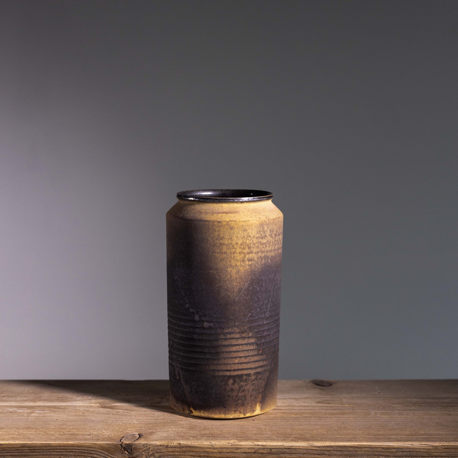 Stoneware vessel with a matte exterior and metallic black interior, designed for a larger selection of flowers or to sit beautifully on its own.